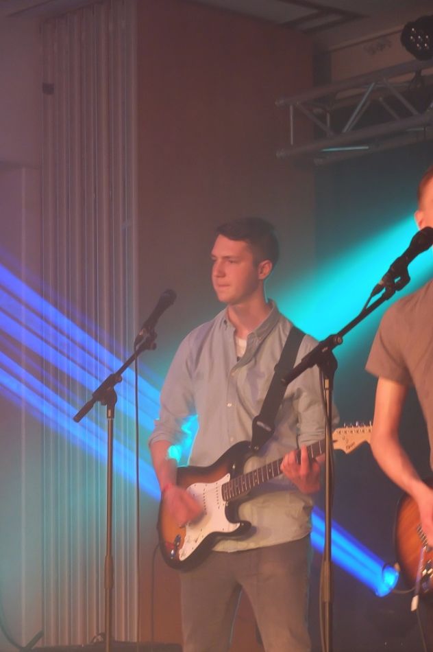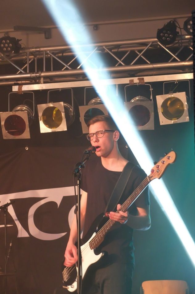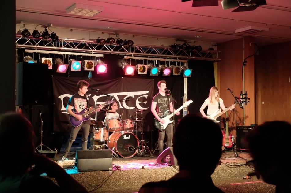 Nach einem Jahr Pause wurde eine altbewährte Tradition am Uracher Gymnasium wiederbelebt: Die Bandnight. Nachdem der Arbeitskreis Technik in einem Kraftakt den Lichthof der Schule in eine beeindruckende Rocklandschaft aus Lichtstrahlern und Lautsprechern verwandelt hatte, konnten die sechs Bands mit leichter Verspätung (wie sich das für große Konzerte gehört) die Besucher zum Schwitzen bringen. Den Anfang machte eine noch junge Band aus dem Proberaum unserer Schule: Voltage Strike (Bild). Und sie wurden ihrem Namen mehr als gerecht. Mit vielen erstklassig dargebotenen Coverhits der Rockgeschichte elektrisierten die vier Bandmitglieder gleich zu Beginn das Publikum. Der erste Song war Programm: „Blitzkrieg Bop“ von den Ramones steht wie kaum ein anderer Song für die Verschmelzung von Rock'n'roll und Punk. Die Zeile „Hey, ho, let's go!“ ist ein Meilenstein in der Musikgeschichte und gleichzeitig pure Lebensfreude. Wie einige der ganz großen Bands der Siebziger- bis Neunzigerjahre haben auch Voltage Strike eine Frau an der Bassgitarre. Damit stehen sie in einer Reihe mit den großen Sonic Youth, Melvins, Pixies und natürlich den Smashing Pumpkins. Die Gruppe, die nach dieser engagierten Debutband die Bühne erklomm, sorgte sicher für den größten stilistischen Bruch des Abends: Älternabend, ein kurzfristig für die Bandnight aus der Traufe gehobenes Musikprojekt dreier Lehrer des GEG. Sie orientierten sich am Sound der frühen Achzigerjahre, die bekannte Neue Deutsche Welle-Band Trio hat sie maßgeblich beeinflußt und sie überraschten die Schüler mit elektronischer DADA-Kunst. Danach wurde es wieder rockig. Double U D 40 und The Standards, zwei Band mit ehemaligen Schülern des GEG und beide mit Wurzeln in Hülben, präsentierten rockig-punkiges und stimmten so die Menge für den letzten Act des Abends ein. Double U D 40 sorgten mit drei Gitarren für ein ordentliches Soundbrett von der Bühne. The Standards bestachen auch durch ihre Songauswahl und durchbrachen die E-Gitarren-Rockschiene durch den funky Crossover der Red Hot Chili Peppers. Die letzte Band des Abends, die Gruppe DEFACE, fünf ehemalige GEGler, sind in der Region durchaus schon bekannt und sorgten für einen angemessenen Abschluss des Abends. Sowohl die kreativen Texte, als auch der „hart-launige“ Sound der Band sprachen das Publikum offensichtlich an und die Trompetenklänge hoben die Band wohltuend ab. Sie spielten neben älterem Material vor allem die Songs ihrer kürzlich erschienenen CD „Gemeinsam daneben“. Insgesamt ein sehr gelungener Neustart für die Uracher Bandnight und wir hoffen auf noch mehr begeisterte Gäste in den nächsten Jahren.