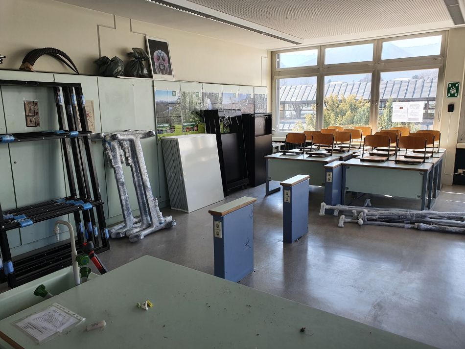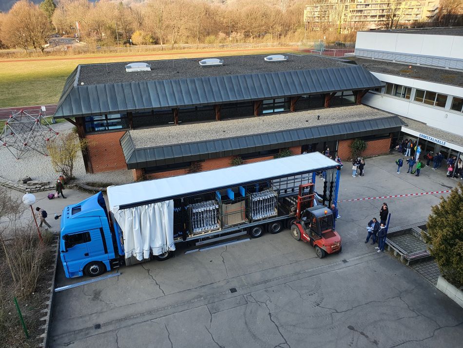 In den letzten beiden Coronajahren ist die Bedeutung gut ausgebauter Digitalstrukturen im Bildungsbereich zunehmend ins Bewusstsein der Öffentlichkeit gerückt. Dank finanzieller Mittel aus dem Digitalpakt II, aufgestockt durch den kommunalen Träger und Landesmittel, konnte nun auch unsere Schule komplett mit digitalen Tafeln ausgestattet werden. Insgesamt wurden rund 300 000€ investiert, um den Schulbetrieb für die Anforderungen der digitalisierten Bildungswelt zu ertüchtigen. Am Donnerstag den 25. März begannen die Vorbereitungen für die Installation der neuen Tafelmodule. Die Arbeiten zogen sich über das komplette Wochenende, galt es doch insgesamt 41 digitale Tafeln in den Klassenzimmern und Fachräumen aufzubauen. Die großen Bildschirmelemente (86 Zoll) wurden auf speziell angefertigten Stahlkonstruktionen befestigt, die den insgesamt 140 kg schweren Tafeln zusätzliche Stabilität verleihen. Unsere Schulleiterin Susanne Müller freute sich sehr über den raschen Einbau der neuen Technik und erklärte: „ Wir am GEG bemühen uns schon seit längerer Zeit darum, die Chancen der Digitalisierung für den Unterricht nutzbar zu machen, doch jetzt werden sich unsere Möglichkeiten sicher noch einmal vervielfachen.“