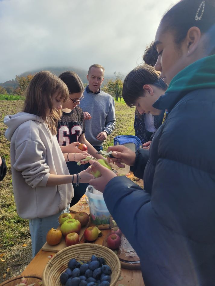 So wanderte man am Dienstag zum Uracher Wasserfall, genoss die herrliche Natur und stärkte sich beim gemeinsamen Grillvergnügen. Die ausgekühlten Knochen wurden im Anschluss im heißen Wasser des Uracher Thermalbads aufgewärmt. Der Besuch eines Bio-Bauernhofs in Strohweiler war sicher ein weiteres Highlight für unsere Besucher. Überhaupt standen in diesem Jahr ländlich-naturverbundene Aktivitäten im Vordergrund. Als zertifizierte Biosphärenschule zeigte man den Gästen natürlich gerne die Bedeutung unserer Streuobstwiesenbiotope. Im Anschluss galt es selbst aktiv zu werden, denn im Backhaus Dettingen wurden vielfältige Köstlichkeiten selbst zubereitet.
