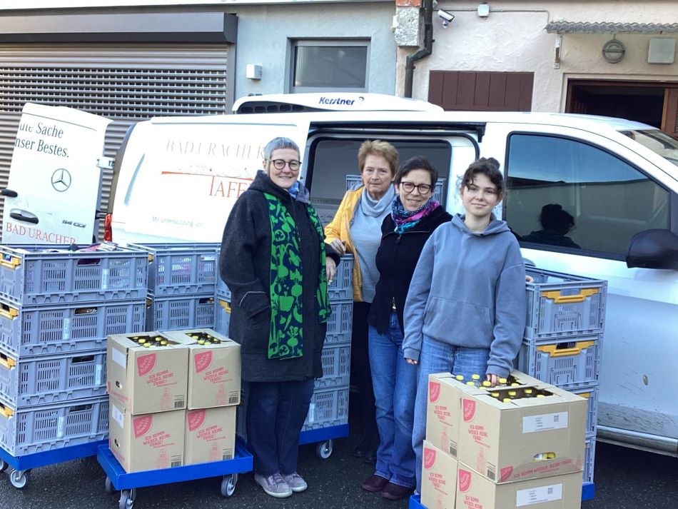 Pünktlich zum 1. Dezember hat das Graf-Eberhard-Gymnasium wieder eine große Spende an die Bad Uracher Tafel gebracht. Wie jedes Jahr im November hat die SMV in der Schulgemeinschaft haltbare Waren aus dem Supermarkt gesammelt und dabei von Schülern, Eltern und Lehrern 835 Einzelartikel erhalten. Besonders engagiert war dabei Schülersprecherin Amrei Schmid, die die sortierten Waren vergangenen Dienstag gemeinsam mit Lehrerin Julia Brauch zum Tafelladen in der Pfählerstraße brachte, wo die Spende mit großer Freude von der ehrenamtlichen Helferin Hildegund Adolph und der neuen Leiterin der Diakonischen Bezirksstelle Bad Urach, Ute Steinbrück, entgegengenommen wurde.