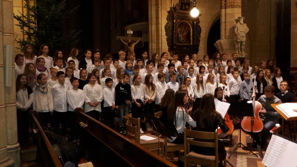 Die Mitglieder der Big Band konnten sich durch die Begleitung der den Abend strukturierenden Gemeindelieder doch noch einbringen und auf diesem Weg ihr musikalisches Können aufblitzen lassen. Feierliche Weihnachtsstimmung kam spätestens mit dem Auftritt des Chors der Jahrgangsstufe 6/7 unter der Leitung von Cora-Ann Wagener-Mühleck auf. Die jungen Sänger begeisterten das Publikum mit internationalen Weihnachtsliedern; beispielsweise aus England und Israel. Besondere Erwähnung verdient ohne Zweifel die mutigen und gelungenen Soloeinlagen des Sopranisten Tim Schnells. Der Auftritt des Orchesters, das Stücke von Johann Joseph Fux und Antonio Vivaldi präsentierte, riss die Zuschauer sichtlich mit. Musikgenuss auf höchstem Niveau!
