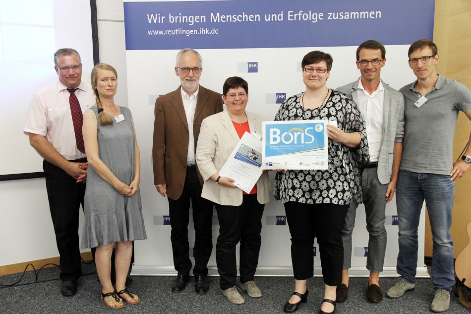 Das BoriS-Siegel (Berufsorientierung in Schulen) wird seit dem Jahr 2007 an Schulen vergeben, die besonderes Augenmerk darauf legen, ihre Schülerinnen und Schüler bestmöglich auf die Berufs- und Studienwahl und die Arbeitswelt vorzubereiten. Die Trägerschaft und Zertifizierung der Schulen wurde von den regionalen Industrie- und Handelskammern übernommen. Im Mai dieses Jahres war es dann auch für das GEG wieder soweit. Drei Vertreter der IHK Reutlingen besuchten das Ermstalgymnasium und ließen sich über den aktuellen Stand unserer berufs- und studienvorbereitenden Aktivitäten unterrichten. Schon bestehende Projekte wurden wurden rekapituliert und neue Ideen diskutiert. Am Ende waren die drei Auditoren offensichtlich angetan. Am Mittwoch den 27. Juni konnten Schulleiter Friedemann Schlumberger und einige Mitglieder unseres BoriS-Teams (Vera Thorwarth, Julian Aißlinger, Susanne Müller und Wolfgang Scherer, Gabi Börner) das begehrte BoriS-Siegel im IHK-Zentrum Reutlingen entgegen nehmen. Eine solche Auszeichnung zu erringen kostet Kraft und Mühe, sie aber zweimal zu verteidigen beweist darüber hinaus, wie ernst es unsere Schule meint, wenn es darum geht unsere Schülerinnen und Schüler bestmöglich vorbereitet in die weite (Berufs-)Welt zu entlassen.