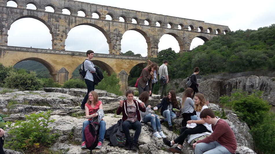 Auch am dritten und letzten Tag besichtigten wir wieder ein Weltkulturerbe: den Pont du Gard- einen knapp 2000 Jahre alten römischen Aquädukt. Nach gemeinsamem Picknick am Flussufer ging es für einige zum berühmten Ockersand weiter, für andere zum Shoppen nach Avignon (wo so manch einer vor allem als Taschenträger für die Beute anderer Schüler fungierte).