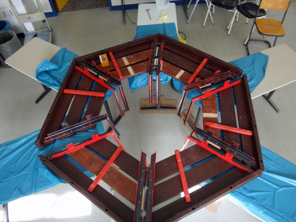 Ein symbolträchtiges Wahrzeichen ist zurück: die sechseckige Bank, die sich in der Erinnerung vieler ehemaliger Schülerinnen und Schüler jahrzehntelang fest an die dominante Schulhofuhr angelehnt hatte, ist saniert - mit einem neuen pädagogischen Konzept!