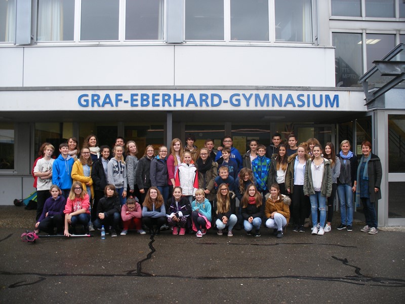 In dieser Woche erhielt das Graf-Eberhard-Gymnasium Besuch aus dem Swavesey Village College bei Cambridge. Achtzehn Schülerinnen und Schüler, sowie drei Lehrer unserer englischen Partnerschule wohnten für eine Woche bei Gastfamilien und erkundeten das Ermstal , sowie die nähere Umgebung. Neben der Teilnahme am deutschen Schulunterricht, erkundeten unsere Gäste auch noch das nahegelegene Schloss Lichtenstein, den Wasserfall und das Uracher Rathaus, wo sie vom stellvertretenden Bürgermeister Dietmar Schrade empfangen wurden. Ein besonderer Höhepunkt für die englischen Schüler war sicher der Besuch der Schokowerkstatt bei Ritter Sport in Waldenbuch und wir hoffen, dass sie über dieses Erlebnis hinaus, viele Angenehme Erinnerungen mit nach Hause genommen haben. Dieser Austausch hat am GEG eine sehr lange Tradition und wurde seit 33 Jahren auf englischer Seite von Mr Simon Elbourn betreut. Wir begrüßen daher an dieser Stelle Mr James Sleightholm, Ms Katherine Monument und Susanne Bayer-Crosby und hoffen auf eine weiterhin partnerschaftliche und fruchtbare Zusammenarbeit.