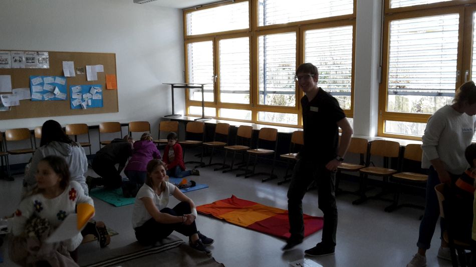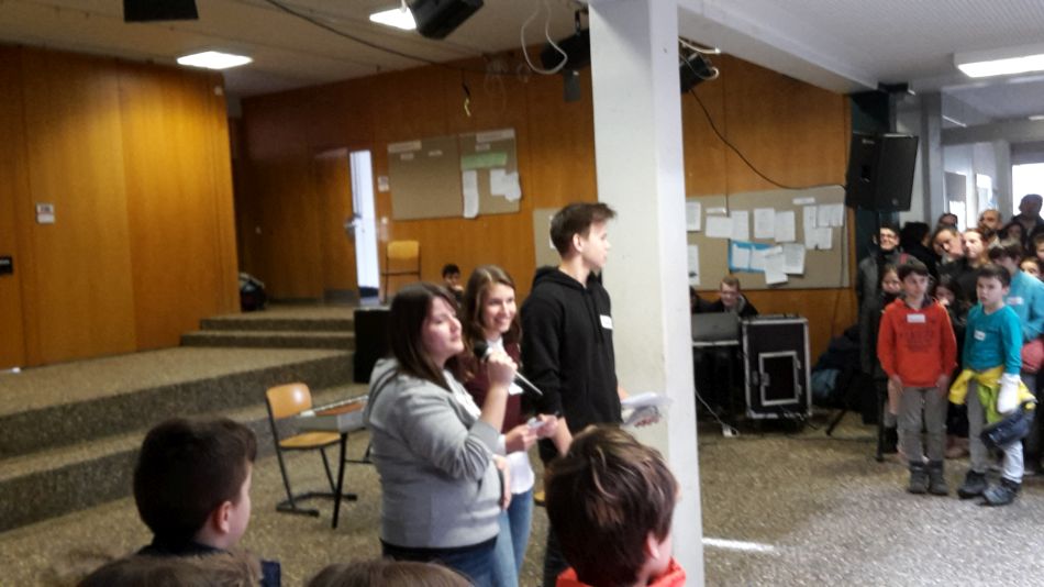 Danach stellten die drei Schülersprecher Diana Bonano, Nora Beck und Moritz Neugschwander die vielseitige Arbeit der SMV an unserer Schule vor und teilten die Viertklässler in Kleingruppen ein, die von älteren Schülern des GEG durch das Schulhaus geführt wurden. Auf diese Weise konnten die interessierten Kinder einen direkten Einblick ins Schulleben gewinnen. Im Fachbereich Chemie konnten die Schnuppernden beispielsweise Centstücke in „Goldmünzen“ verwandeln oder das Entstehen von „Elefantenzahnpasta“ bewundern. Der Fachbereich Sprachen präsentierte gleich alle drei Profile, die am GEG gewählt werden können und so tauchten die Schüler in liebevoll gestalteten Räumen in die Kultur Spaniens, Frankreichs, ja sogar die des antiken Roms ein. Das Angebot war riesig dieses Jahr: Von den Schulsanitätern, die an Puppen Erste-Hilfe-Übungenn durchführten, über ein biologisches Quiz, bis hin zu einem umfangreichen Sportparcour in der Turnhalle. Für jeden Geschmack war etwas geboten.