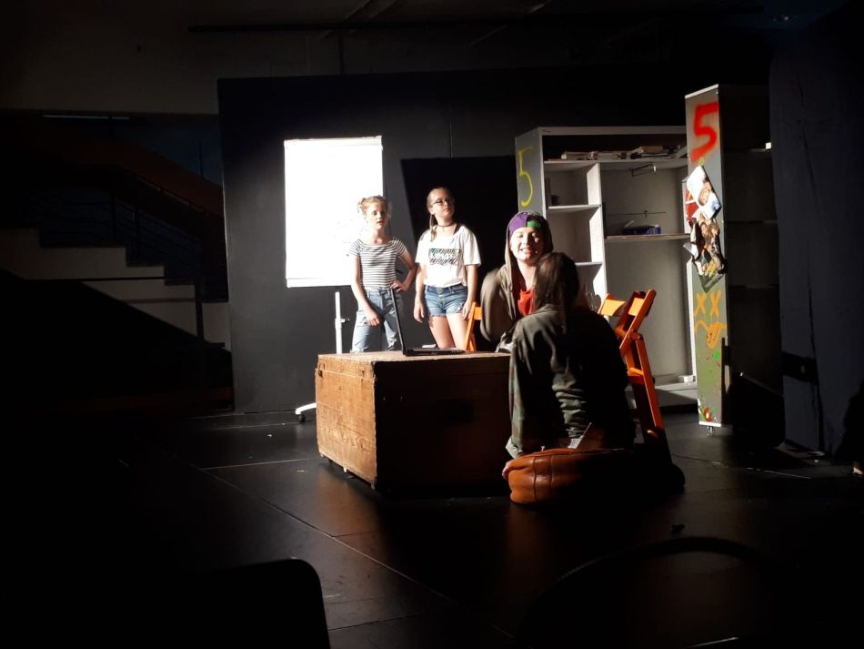 Das gesamte Schuljahr hatte die Gruppe an ihrem diesjährigen Stück gearbeitet. Mit über zwei Stunden Länge erforderte die Aufführung auch entsprechend gründliche Vorbereitung: Und die hatte sich gelohnt. Den ca. 60 Zuschauern des Premierenabends wurde so einiges geboten.