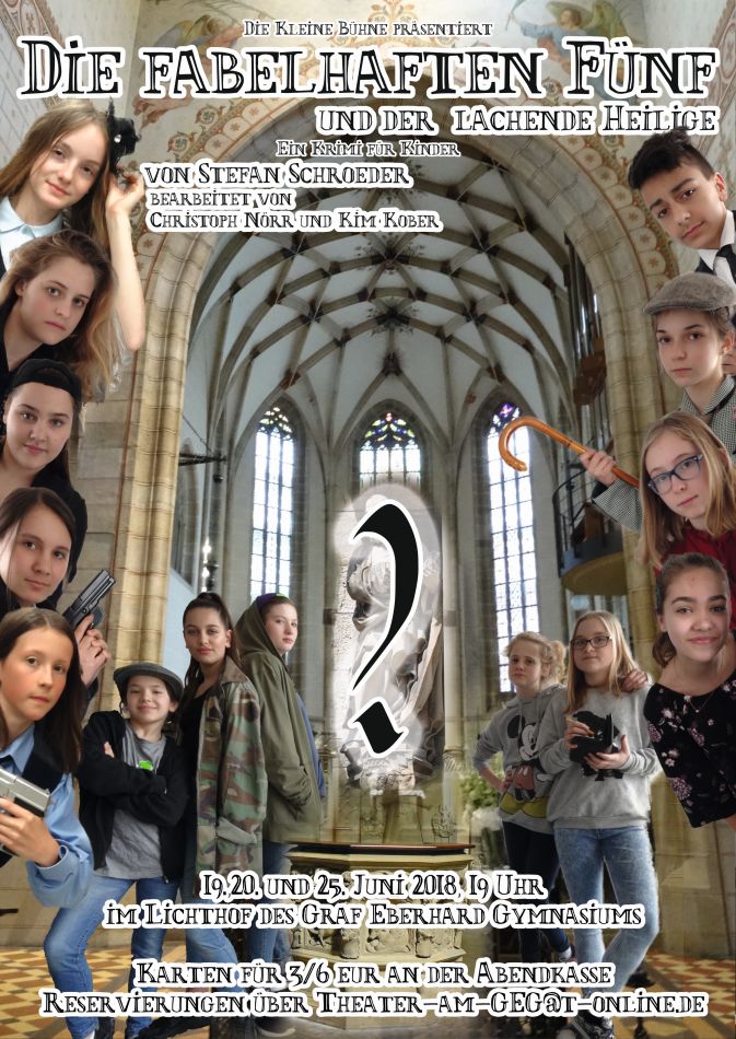 Bad Urach wird erschüttert von einem dreisten Einbruch in die katholische Medarduskirche, wobei die Diebe seltsamerweise nichts entwendet haben. Die Polizei, im Stück selten wirklich erfolgreich agierend, tappt völlig im Dunkeln. Da ist es nur logisch, dass die fünf Jugendlichen Friederike Quinn (Amelie Scheu), Kyra Schröder (Johanna Sauermann), Jakob von Vogelsberg (Fenna Haas) und die Geschwister Max und Marlene Weiser (Malin Vincent und Annika Moschina) dem Fall selbst lösen müssen.
