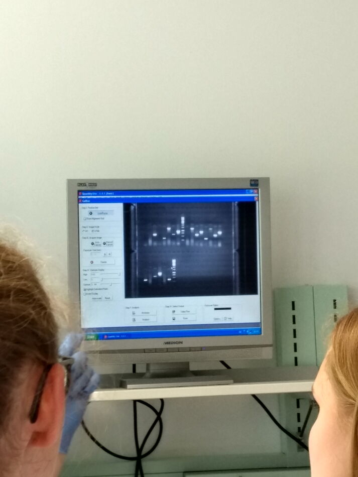 Am zweiten Tag der Exkursion stand dann das akademische Lebenin Heidelberg im Fokus. Man besichtigte den Campus der weltberühmten Ruprecht-Karls-Universität und besuchte die Explo-Lernlabors. Dort lernten die Schüler molekularbiologische Methoden kennen und durften diese gleich in der Praxis erproben: So konnte unsere Gruppe die örtliche Kripo mit Hilfe der Methode PCR bei der Aufklärung eines Tankstellenüberfalls unterstützen und einen antibiotikaresistenten Bakterienstamm in der Universitätsklinik lokalisieren. Dabei kamen viele Laborgeräte wie der Vortexer zum Mischen von Proben, die Zentrifuge zum Auftrennen von Proben oder Mikropipetten zum Abmessen von kleinsten Mengen Flüssigkeit zum Einsatz. Auch die in der Schule oft theoretisch besprochene Gelelektrophorese konnten wir nun endlich einmal selber durchführen, um Täter-DNA mit verdächtiger DNA zu vergleichen bzw. unterschiedliche Plasmide aufzutrennen und somit die Quelle von antibiotikaresistenten Bakterien in einer Klinik zu identifizieren.