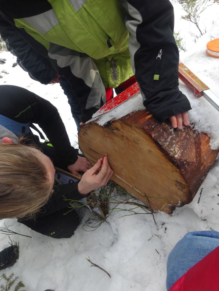 Um 9 Uhr trafen wir uns vor dem Waldschulheim zur Waldolympiade. Es gab vier verschiedene Stationen. An einer Station mussten wir 21 cm eines Baumstamms absägen, ein anderes Mal Alter, Durchmesser und Länge eines gefällten Baums schätzen und danach messen. An weiteren Stationen stapelten wir 1 Kubikmeter Holz auf Zeit und puzzelten Baumstämme zusammen. An der letzten Station sollten wir die Höhe eines Baumes berechnen.