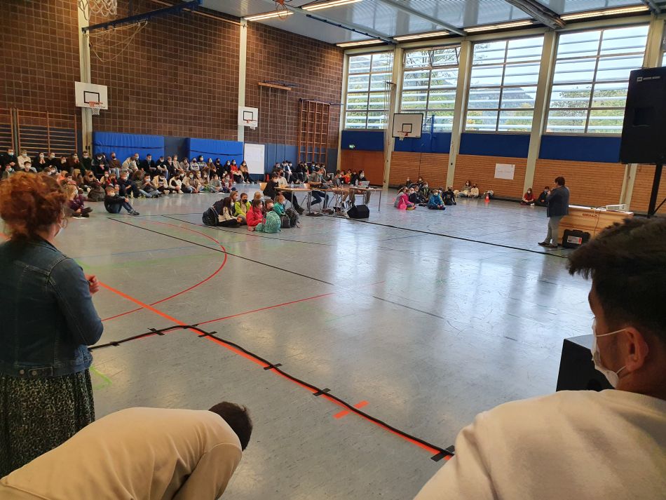 Interessierte Schüler und die frisch gewählten Klassensprecher versammelten sich am Dienstag 19. Oktober nach der großen Pause in der Sporthalle, um neue AK’s zu bilden, AK-Sprecher zu wählen und Ideen für das kommende Schuljahr zu sammeln. Nach der langen, erzwungen Coronapause war es äußerst erfrischend, die vielen engagierten und motivierten Schülerinnen und Schüler zu sehen, die sich in die SMV-Arbeit stützten. Schnell waren die traditionellen AK-Gruppen (Aktionen, Soziales, Veranstaltungen, Technik, Finanzen etc.) mit Freiwilligen gefüllt: Erste Ideen konnten gesammelt und bereits grobe Strukturen etabliert werden. Aber auch für den AK-Schulball fanden sich wieder Teilnehmer und so hoffen wir, dass auch diese Institution, die gerade erst vor einigen Jahren wiederbelebt worden war, weiterhin ihren Platz am GEG finden wird. Besonders erfreulich war der Fakt, dass sich eine Reihe von Oberstufenschülern bereit erklärte, einen AK-Festschrift zu gründen, um einen Schüler-Beitrag für das anstehende 50. Schuljubiläum im nächsten Jahr zu erstellen.