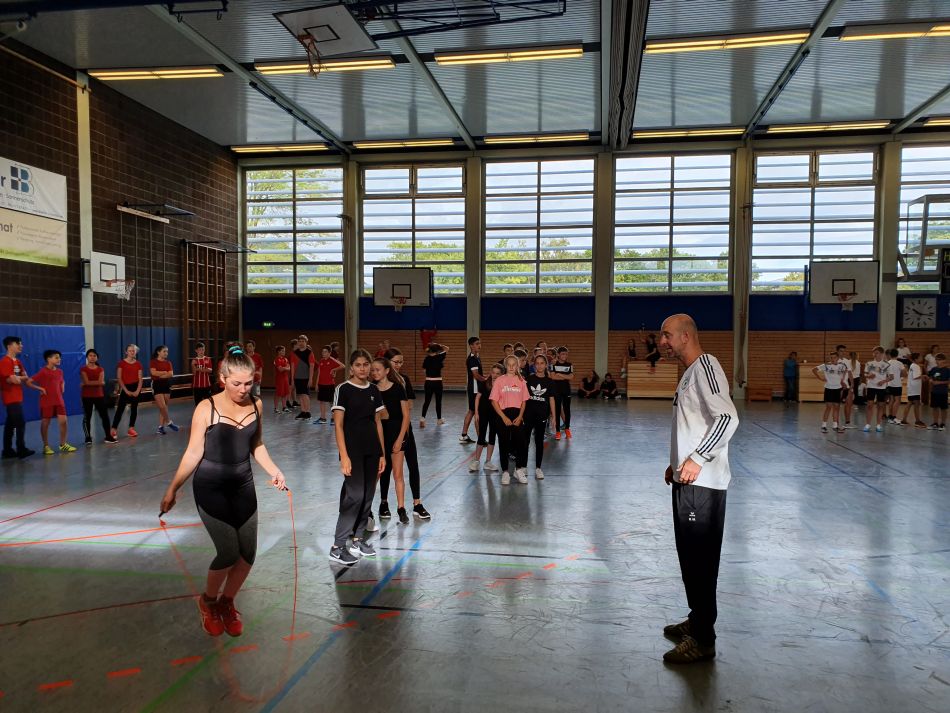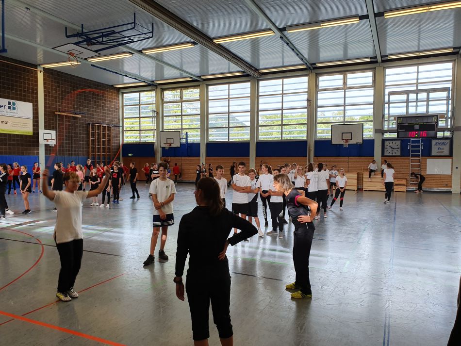 Zwar ging es durchaus darum Punkte für das eigene Team zu sammeln, doch im Vordergrund des Sporttages standen Spaß und Gemeinschaftserlebnis. So wurde darauf geachtet, dass immer möglichst viele Schülerinnen und Schüler zum Einsatz kamen und Teamgeist für ein erfolgreiches Abschneiden erforderlich war. Extrapunkte konnten für besondere Einfälle oder freiwillige Tanzdarbietungen ergattert werden.