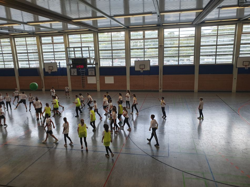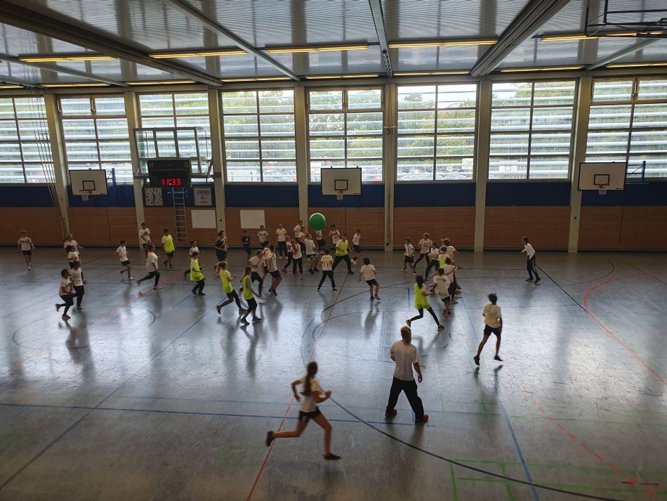 Bereits Tage vor dem eigentlichen Event bereiteten sich die sechs teilnehmenden Klassen intensiv vor: Schlachtrufe wurden eingeübt und passende Teamnamen kreiert. Und so starteten letztendlich die Teams „Pommes rot-weiß“ (7a), „Peppa Wutz Familie“ (7b), Schimmel(d)inos“ (7c), „Gurkengang“ (8a), „Black Monkeys“ (8b) und „Red Mafia“ (8c) voll motiviert in das Turnier. Nach einem knackigen Aufwärmprogramm gings richtig los mit insgesamt zehn verschiedenen Spielrunden.