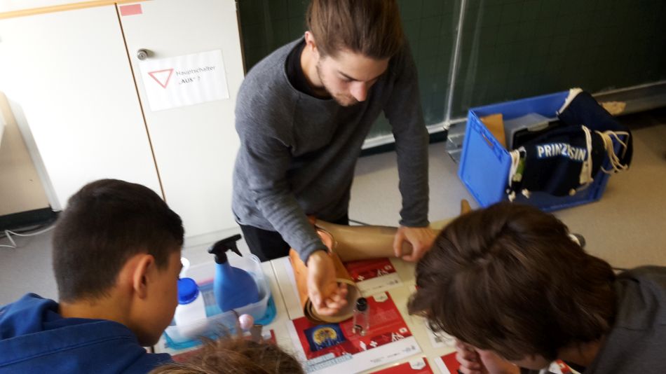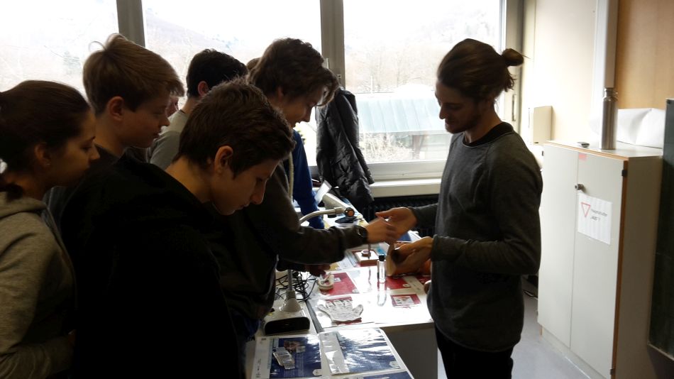 Die beiden Dozenten haben selbst ein Studium im MINT-Bereich (Mathematik, Informatik, Naturwissenschaft und Technik) abgeschlossen und konnten dementsprechend konkret aus der Praxis berichten und Fragen aus erster Hand beantworten. Natürlich sollte es nicht nur bei trockenen Vorträgen bleiben. Schließlich ist ein großes Ziel der Coaching4Future-Kampagne, die vielfältigen Anwendungsfelder naturwissenschaftlicher Fertigkeiten lebendig und anschaulich darzustellen. So hatten die Dozenten eine ganze Reihe spannender Exponate mit im Gepäck (digitale 3D-Brillen, moderne Werkstoffe, technisch veredelte Textilien und vieles mehr) und präsentierten das eine oder andere spannende Experiment.