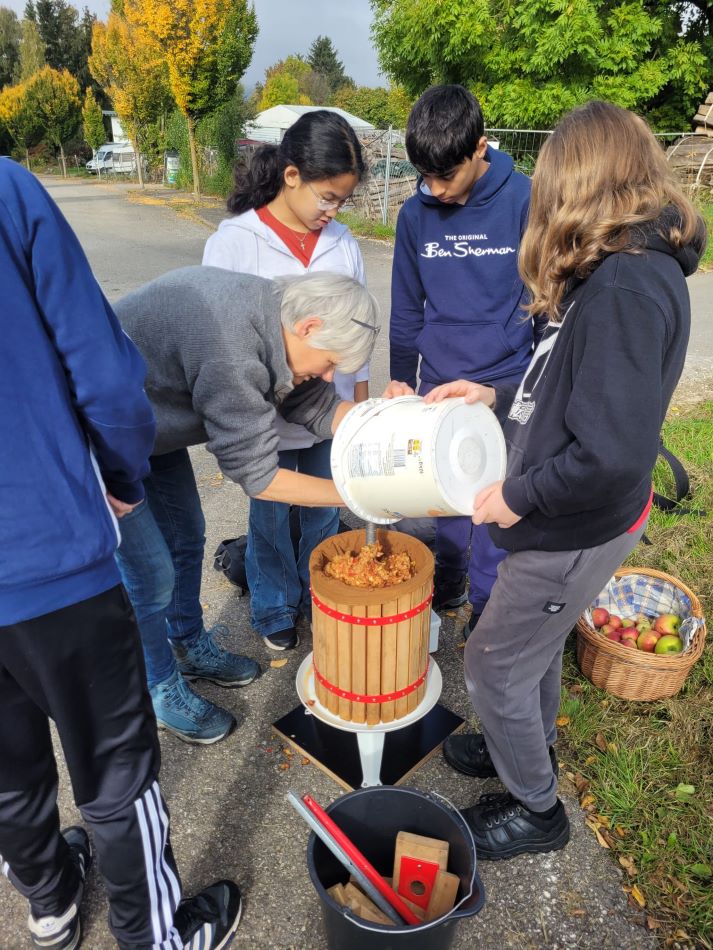 So wanderte man am Dienstag zum Uracher Wasserfall, genoss die herrliche Natur und stärkte sich beim gemeinsamen Grillvergnügen. Die ausgekühlten Knochen wurden im Anschluss im heißen Wasser des Uracher Thermalbads aufgewärmt. Der Besuch eines Bio-Bauernhofs in Strohweiler war sicher ein weiteres Highlight für unsere Besucher. Überhaupt standen in diesem Jahr ländlich-naturverbundene Aktivitäten im Vordergrund. Als zertifizierte Biosphärenschule zeigte man den Gästen natürlich gerne die Bedeutung unserer Streuobstwiesenbiotope. Im Anschluss galt es selbst aktiv zu werden, denn im Backhaus Dettingen wurden vielfältige Köstlichkeiten selbst zubereitet.