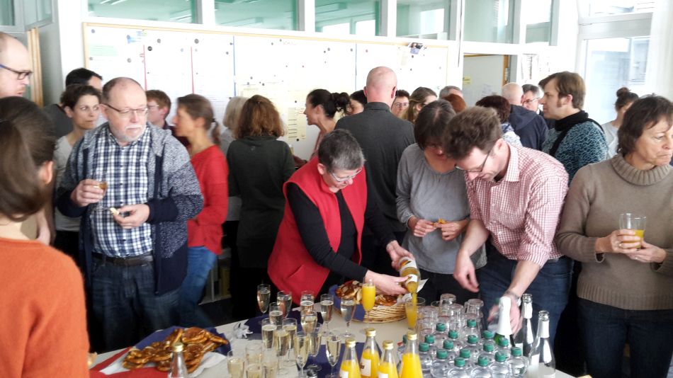 Auf all die genannten Qualitäten gingen auch Schulleiter Friedemann Schlumberger und Bürgermeister Elmar Rebmann in ihren Redebeiträgen ein. Allen Anwesenden wurde schnell klar, dass die Stadt Bad Urach und das Graf-Eberhard-Gymnasium mit Margarete Schmutz eine ganz besondere Persönlichkeit verlieren. Verlieren? Zu unserem Glück nicht wirklich verlieren. Schon seit vielen Jahren ist Margarete Schmutz zusätzlich zu ihren Aufgaben als Sekretärin am GEG auch als Kassiererin des Fördervereins unserer Schule aktiv und wir alle freuen uns sehr, dass sie in diesem Gremium auch weiterhin Teil unserer Schulgemeinschaft sein wird. Und so können wir alle Friedemann Schlumberger ohne Einschränkung zustimmen, als er sagte: „Die Entscheidung Margarete Schmutz den Postens als Kassiererin des Fördervereins anzutragen gehört sicher zu meinen besseren Ideen.“