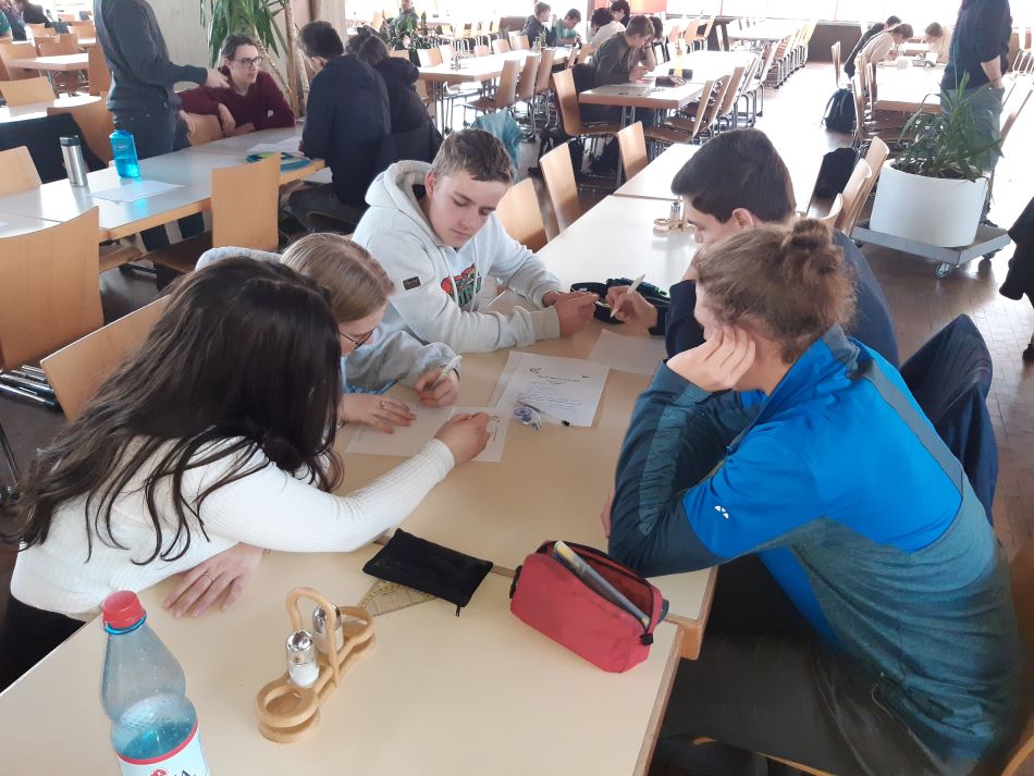 Nach dem Mittagessen in der Mensa folgte der zweite Teil des Wettbewerbs. Dieses Mal kam es noch mehr auf die Geschwindigkeit an, galt es doch, bis zu acht Aufgaben innerhalb von 30 Minuten zu lösen, wobei die Mannschaften immer nur eine Aufgabe vorliegen hatten und die nächste erst nach der Abgabe der vorherigen bekamen.