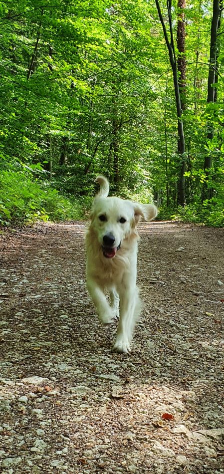 Schon länger hatte sich unsere Kollegin Stephanie Christner mit dem Gedanken getragen, einen Schulhund auszubilden und die Fähigkeiten des vierbeinigen Mitarbeiters produktiv im Alltag des GEG einzusetzen. Ihr inzwischen zweijähriger Golden Retriever Rüde Cooper brachte alles mit, was es für diesen besonderen Einsatzort braucht: Er ist neugierig, kinderfreundlich, geduldig und aufmerksam.