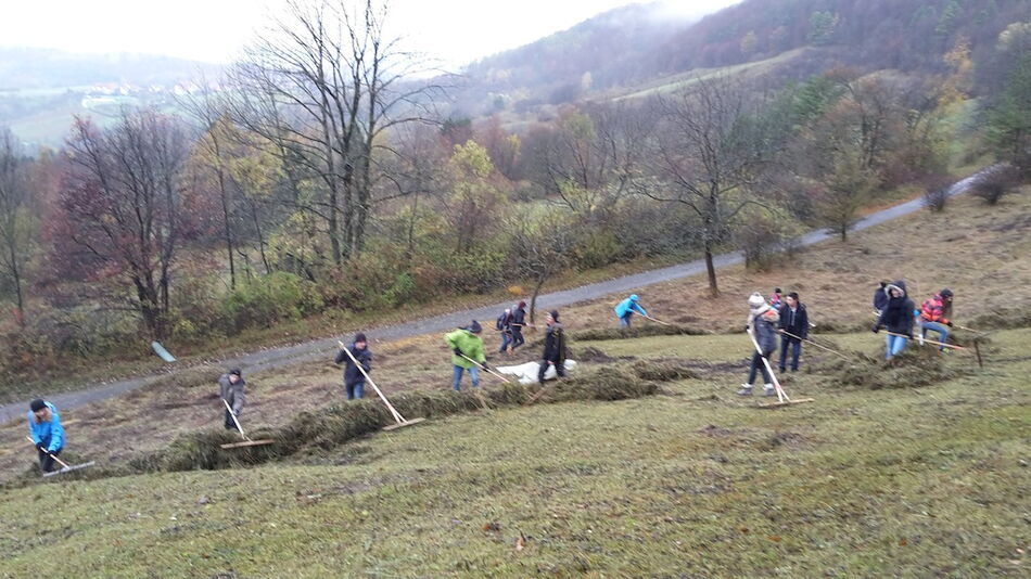 Ziel des Tages war es, große Rasenflächen abzurechen und vom Mähgut zu befreien. Dies dient dem Erhalt der Magerrasen, nährstoffarmen Wiesenflächen. Die Magerrasenbiotope, typisch für die Sonnenhänge der Schwäbischen Alb, zeichnen sich durch eine ganz besondere und vielfältige Flora und Fauna aus. Hervorzuheben sind diverse Orchideenarten, die an diesen Trockenstandorten zu finden sind. Einige dieser Arten stechen durch ein besonderes Fortpflanzungsverhalten hervor, denn sie imitieren mit ihren Blüten Weibchen unterschiedlicher Insekten, um deren Männchen zum Anflug und damit zur unfreiwilligen Bestäubung zu verleiten.
