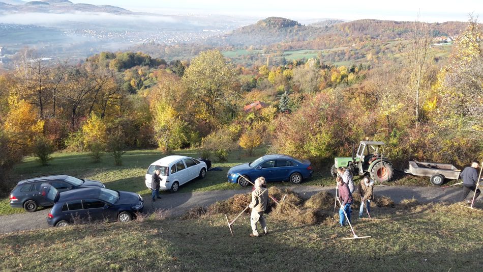 Bei den bereits erwähnten Wetterbedingungen ging die Arbeit leicht von der Hand und so hatte man gemeinsam bereits gegen elf Uhr alle geplanten Flächen von der Mahd befreit. Bei einem gemeinsamen Vesper, gestiftet vom Albverein, ließ man den Tag ausklingen und so manches Gespräch zwischen Naturschutzneuling und erfahrenem Albvereinler kam auch noch zustande. Wir hoffen alle, dass diese tolle und produktive Zusammenarbeit auch in den nächsten Jahren fortgeführt werden kann.
