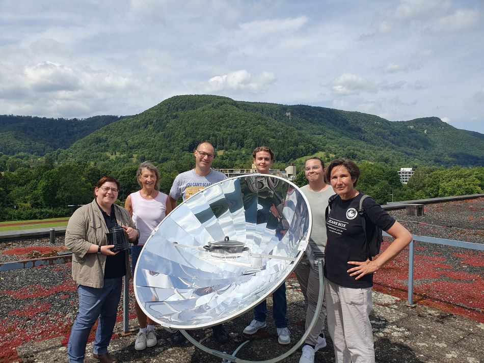 Im Rahmen des Schulprojektes „Dachgarten“ haben zwei unserer Schüler (Colin und Erik) an einem Nachhaltigkeitswettbewerb teilgenommen, wobei sie Geld für die Schule akquirieren konnten. Dieses wurde nun investiert, um einen so genannten Solarkocher zu erwerben. Mit Sonnenenergie wird Hitze erzeugt, die beispielsweise zum Zubereiten von Speisen eingesetzt werden könnte. Neben der nachhaltigen Energiegewinnung lassen sich an diesem Gerät auch ganz wunderbar verschiedene physikalische Gesetze anschaulich darstellen. Entsprechend hoffen wir auf eine rege Nutzung unseres neuen Solarkochers.