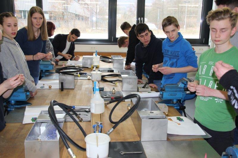 Alle interessierten Schüler haben sich im Vorfeld mit Motivationsschreiben bei den von ihnen favorisierten Unternehmen beworben und konnten sich so ein ihren individuellen Interessen entsprechendes Angebot zusammenstellen. Insgesamt nahm mehr als die Hälfte des Jahrganges an mindestens einer der Schülerakademien teil, die zwischen dem 21. Und dem 23. März stattfanden. Das Angebot war wieder einmal breit gefächert. So konnten sich die Schüler bei der Bosch GmbH bewerben und am Bau eines elektronischen Würfels mitwirken. Das Programm erstreckte sich über den ganzen Tag und war äußerst praxisorientiert. Auch die Akademieangebote der ElringKlinger AG, Weltmarktführer in der Herstellung von Zylinderkopfdichtungen, von Eissmann Automotive Deutschland GmbH, Hersteller von hochwertiger Innenausstattung für Autos im gehobenen Preissegment (Lamborghini, McLaren, Audi, VW, Daimler, etc.), und der Uraca GmbH & Co. KG,Technologieführer bei Prozess- und Industriepumpen, waren vornehmlich technisch ausgerichtet und boten spannende Einblicke in Betriebsabläufe und Entwicklungsprozesse. Das Angebot der KSK Reutlingen, wo Schüler das Projekt einer Existenzgründung begleiten und unter fachkundiger Anleitung einen Businessplan erstellen durften, bot vor allem wirtschaftlich interessierten Teilnehmern viele spannende Betätigungsmöglichkeiten. Die Akademie der BruderhausDiakonie stellte das weite Feld der Pflege vor und rundete die Angebotspalette ab.