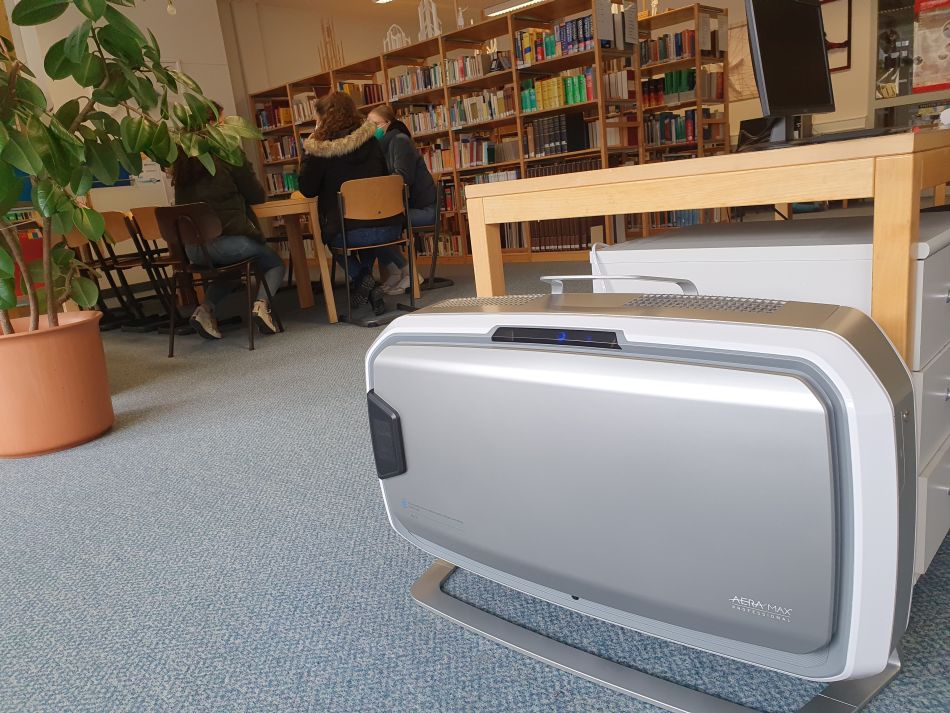 Durch eine großzügige Spende der Volksbank Ermstal-Alb konnte zudem ein moderner Raumluftfilter erworben werden, der die Bibliothek, den zentralen Lernort der Oberstufenschüler, zuverlässig vor einer etwaigen Virenbelastung schützt. Speziell jetzt, vor den wichtigen Abiturprüfungen sind wir alle dankbar für den so geschaffenen Rückzugsort.