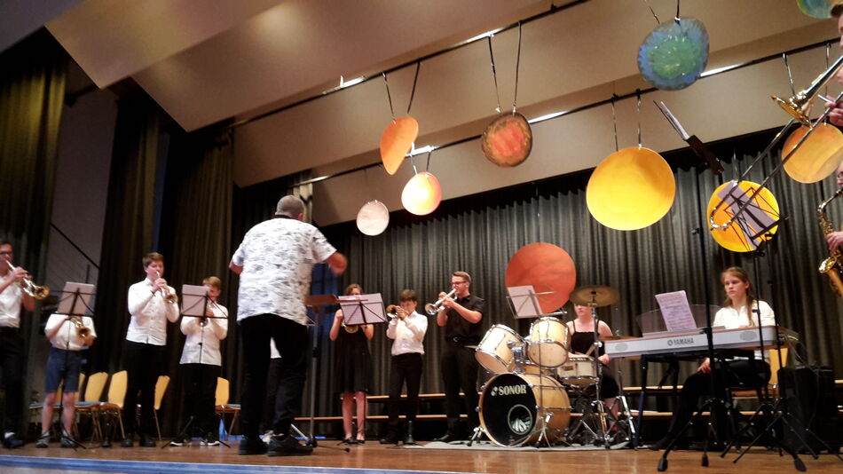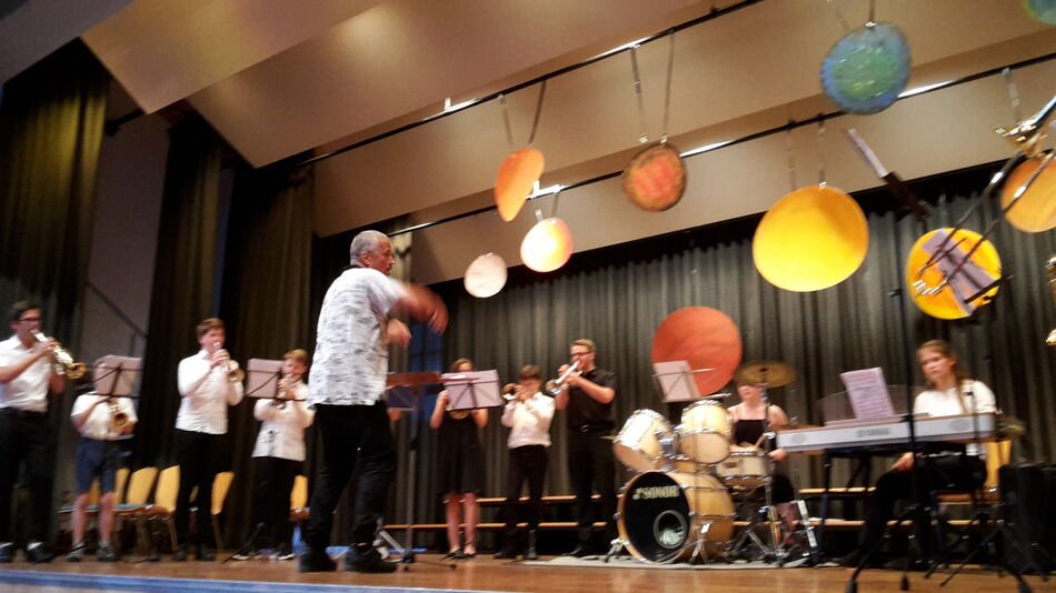 Diesen vielfältigen Abend abzurunden, das ist keine leichte Aufgabe und doch gelang es der Big Band des GEG. Unter der engagierten Führung Fritz Schlenkers zeigten die Brass-Künstler, was sie können. Als Gruppe perfekt eingespielt und mit beachtlichen Solokönnern ausgestattet setzten sie unter diesen tollen Abend einen krönenden Schlusspunkt