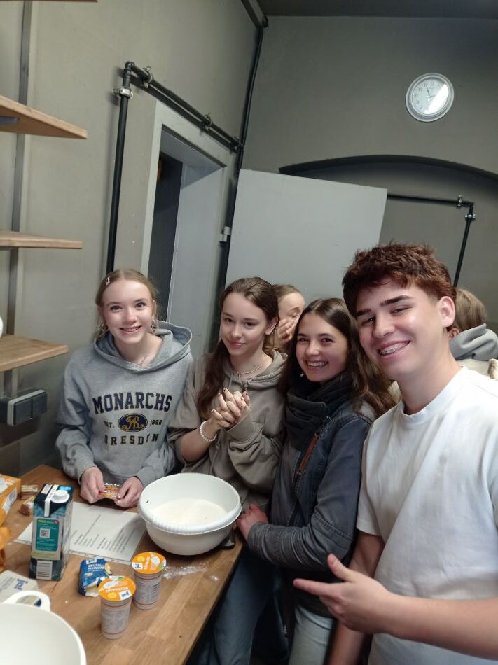 Der Mittwoch führte die Gruppe hinaus in die Natur: Bei einer Wanderung durch die Streuobstwiesen erfuhren die Schülerinnen und Schüler Wissenswertes über diese besondere Kulturlandschaft. Im Anschluss wurde unter fachkundiger Anleitung gemeinsam Rahm- und Apfelkuchen gebacken und verzehrt. Gerade diese Aktivität erwies sich als echtes Highlight, da Teamarbeit und gemeinsames Tun die Gruppe spürbar zusammenschweißten.