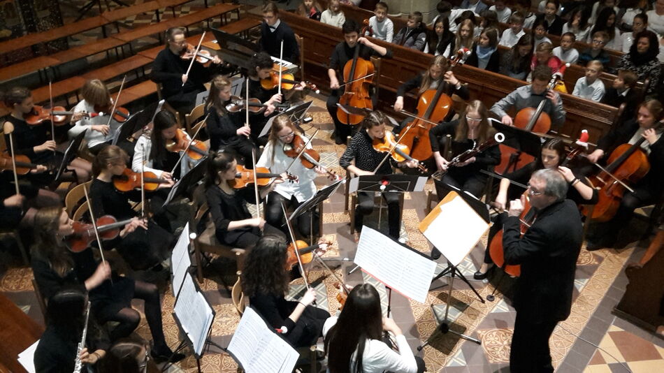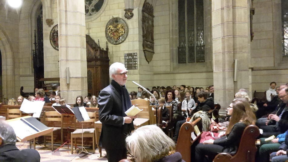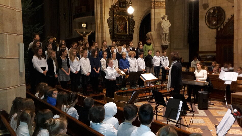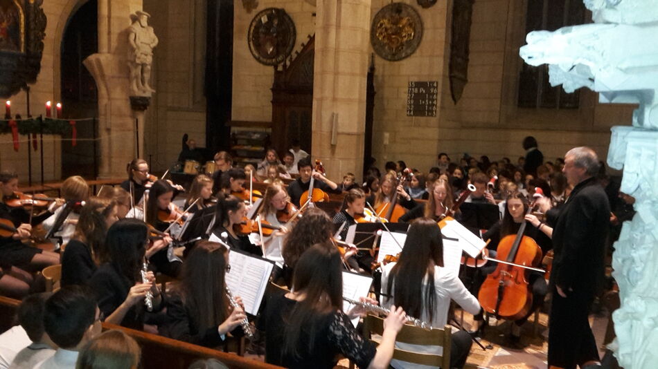 Die Mitglieder der Big Band konnten sich durch die Begleitung der den Abend strukturierenden Gemeindelieder doch noch einbringen und auf diesem Weg ihr musikalisches Können aufblitzen lassen. Feierliche Weihnachtsstimmung kam spätestens mit dem Auftritt des Chors der Jahrgangsstufe 6/7 unter der Leitung von Cora-Ann Wagener-Mühleck auf. Die jungen Sänger begeisterten das Publikum mit internationalen Weihnachtsliedern; beispielsweise aus England und Israel. Besondere Erwähnung verdient ohne Zweifel die mutigen und gelungenen Soloeinlagen des Sopranisten Tim Schnells. Der Auftritt des Orchesters, das Stücke von Johann Joseph Fux und Antonio Vivaldi präsentierte, riss die Zuschauer sichtlich mit. Musikgenuss auf höchstem Niveau!
