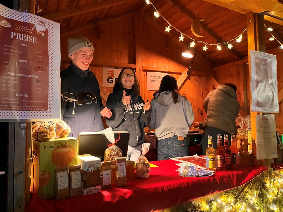 Auch auf dem Uracher Weihnachtsmarkt war das GEG in diesem Jahr wieder präsent. Schüler und Lehrer verkauften am selbst gestalteten Stand allerlei Handgemachtes, wie Crêpes, Vogelhäuschen und Geschenkkarten. Selbstverständlich wurden auch Honig und Apfelsaft vom schuleigenen Gütle angeboten. Ein voller Erfolg.
